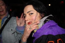 On Friday May 19 2017, the Salle des Fêtes in Chaumont (FR) hosted the third edition of the ULTRATATANE project which invites international artists to perform at the closing party of Festival international de l'affiche et du graphisme de Chaumont. Fatface was a visual performance including 2 big faces that changed their identity throughout the show, which questions the congruence of an artist on the stage. The two big heads have been prerecorded and controlled by code including two keyboards where each key was connected to a different short gif of the face Rebe or TT. The 200 animations were categorized in politicians, kids, robots and drag queens. During this performance both wireless keyboards were passed to different people who had the power to adapt the identity on the stage next to/ sound by Torus ✌️