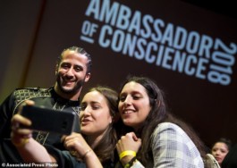 We have been amazingly honored to meet NFL quarterback Colin Kaepernik who decided to knee down during the national anthem to protest against racial injustice in the US. He was awarded with the Ambassador of Conscience Award 2018 that we designed. Watch the akward video of us trying to explain the project <––